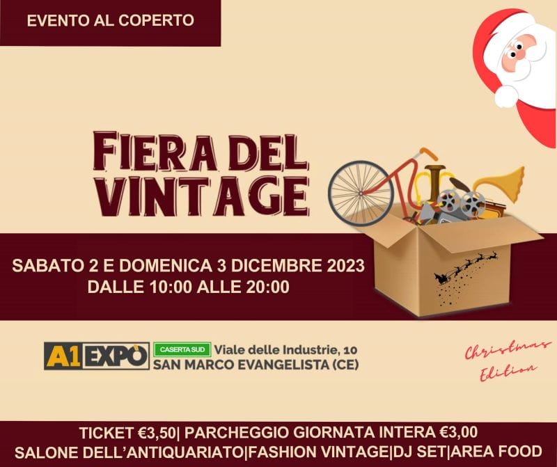 Appuntamento per sabato 2 e domenica 3 dicembre e recarci in Viale delle Industrie 10, a San Marco Evangelista (Caserta Sud) e partecipare a Fiera del Vintage, punto di riferimento per tutti gli appassionati dei viaggi nel tempo ed omaggiare i tempi che furono…e quelli che saranno.